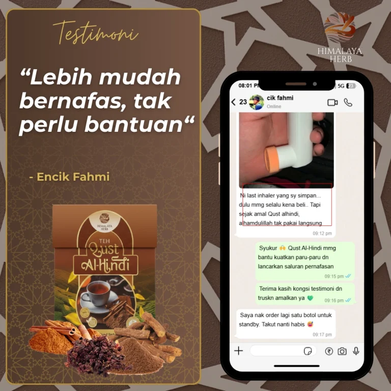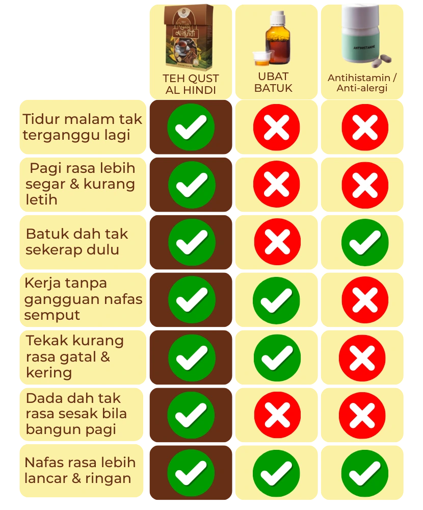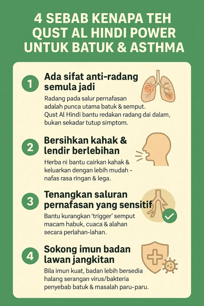 FORMULASI TERBARU EKSTRAK QUST AL HIND UNTUK SUKAR BERNAFAS KETAT DADA BATUK TERUK LETIH SUKAR BERCAKAP RESDUNG EKZEMA